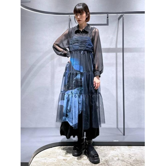 This is a collaboration between Hallere's popular part pleat series x sheer shirt