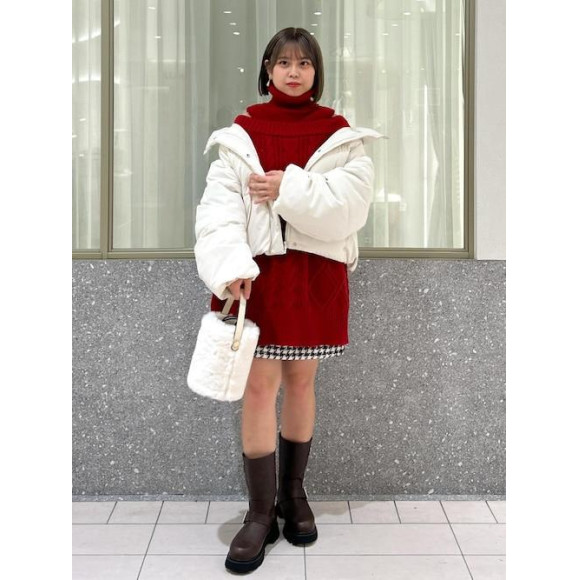 Combined with a red knit dress with a tweed skirt, this outfit is perfect for Christmas.♪