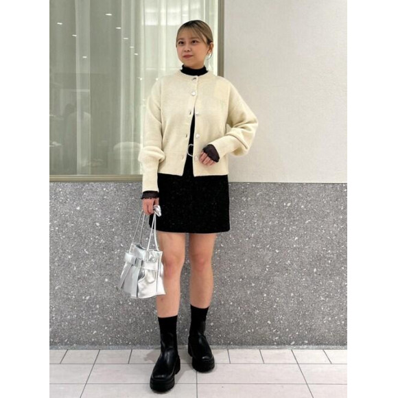 A glittering coordinate with a lame cardigan and skirt with a lame inner layer.♪