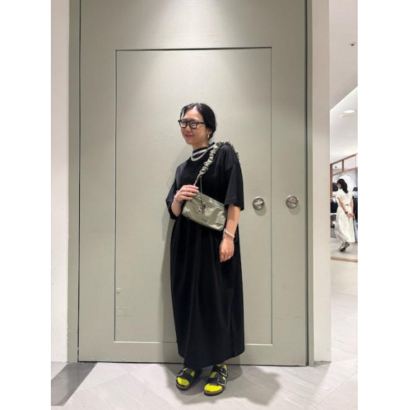 It is a simple dress, but it is cute with color on the ribs around the neck. The smooth fabric feel is comfortable even in summer♡