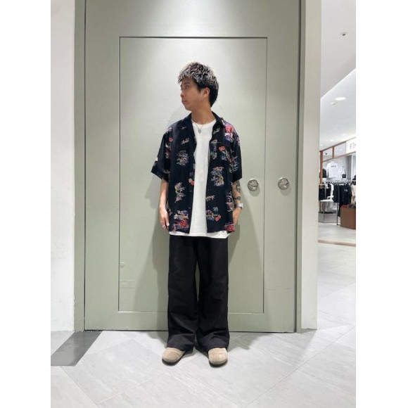 Overall, the size of tops and bottoms is larger. Bottoms are wide straight slacks. I tried to match the beautiful pants with a playful shirt with a relaxed size feel.◎