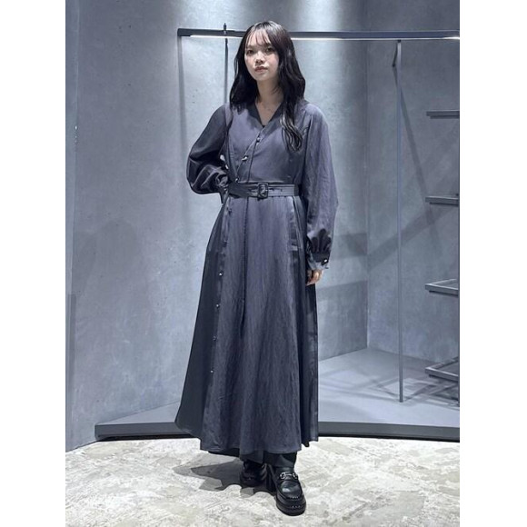 □Satin fabric is layered on the front opening and collar to express kimono-likeness.