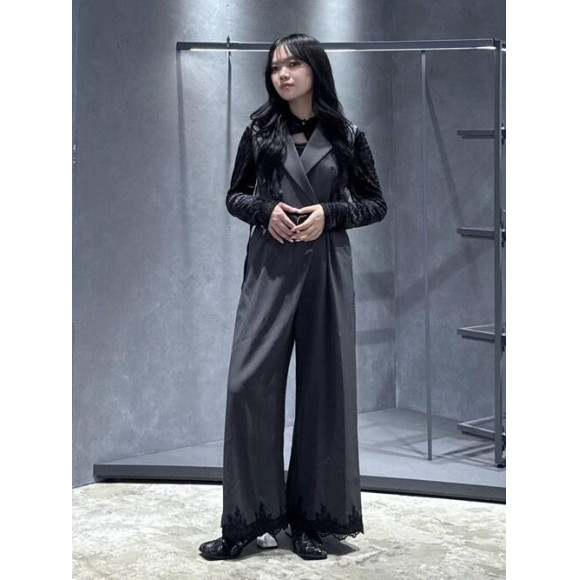 □A jumpsuit with a delicate lace embroidery on the hem adds a lady element