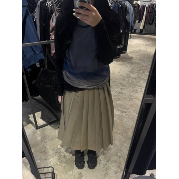 □The skirt is medium-length, so just wear it to create a trendy look.